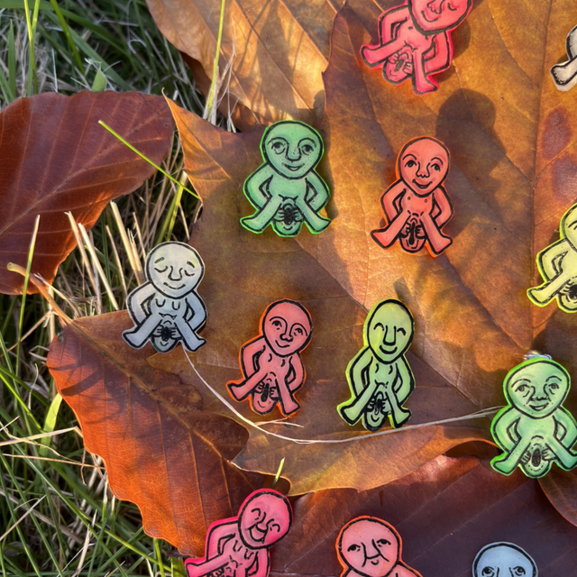 Hand made Sheela na Gig lucky pin badges. Each piece is unique with its own expression and features so have a browse through what I have available and choose your favourite personality to adopt and take home.
