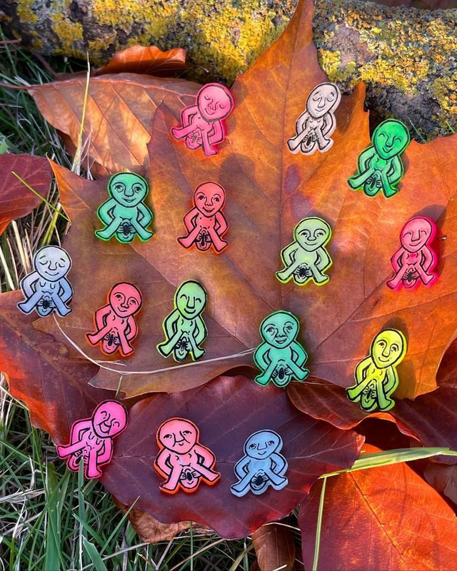 Hand made Sheela na Gig lucky pin badges. Each piece is unique with its own expression and features so have a browse through what I have available and choose your favourite personality to adopt and take home.