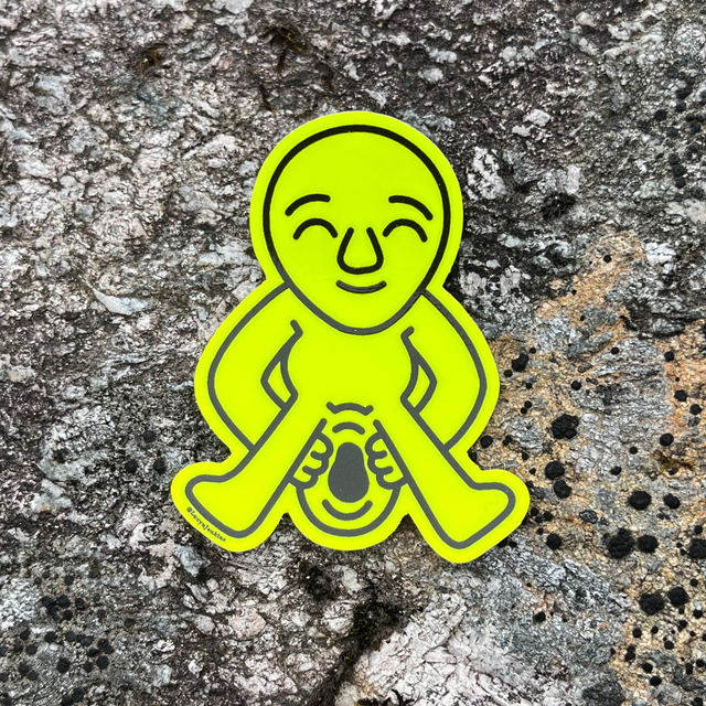Hard wearing and durable, these fluro Sheela na Gig vinyl stickers will make your heart pop.